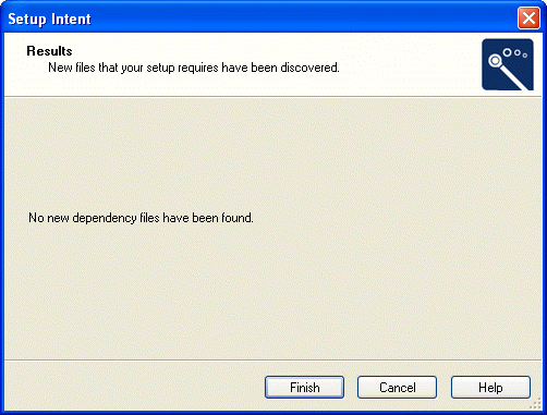 Click Finish to exit the Setup Intent Wizard and return to the Repackaging project (with selected files automatically added to the project), or click Back to return to the Scanning Project Panel.