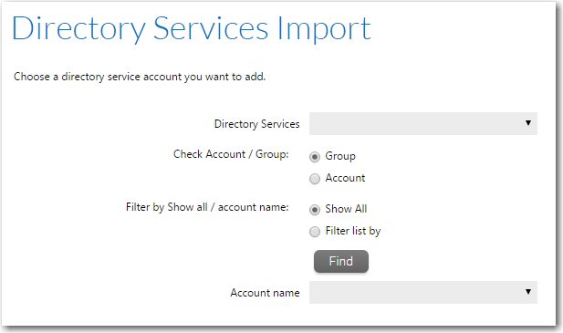 Choose the directory service containing the account or group you want to import from the Directory Service list.