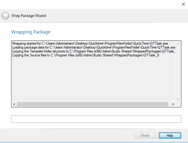 Click Next. The Wrapping Package panel opens and wrapping is initiated. When the process is complete, confirmation messages are listed.