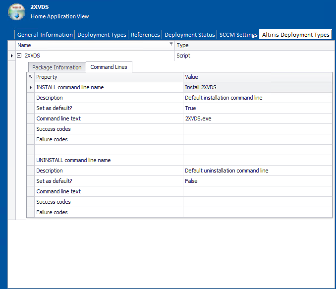 On the Command Lines subtab of the Altiris Deployment Data tab, you can configure a package’s Altiris-related command line settings.
