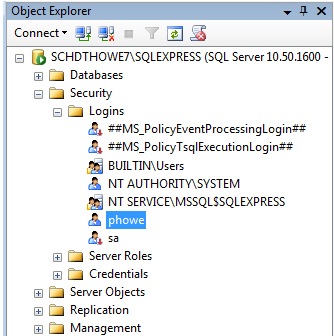In the Object Explorer, open the Security > Logins node and right-click on the user account or user group that you want to assign permissions to.