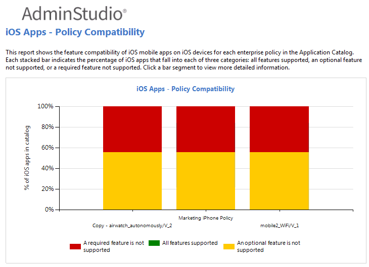 - This report displays an icon to indicate the compatibility of each iOS mobile app with the selected policy.