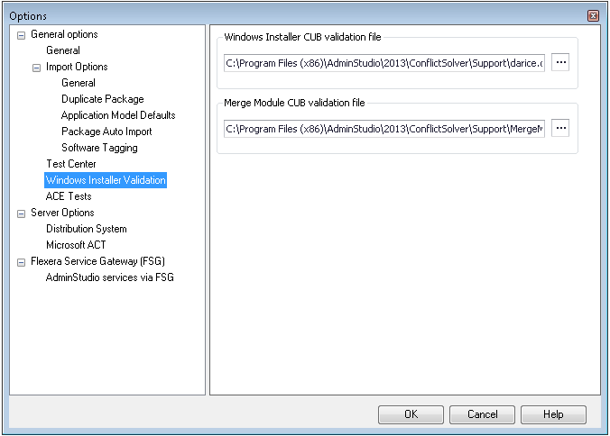 Windows Installer CUB validation fileThe file specified in this field contains the Internal Consistency Evaluators (ICEs) that will be used for validation of Windows Installer packages. Either enter the location of this file directly, or use the Browse button (...) to locate it.