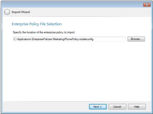 Browse to an enterprise policy file and then click Next to continue.