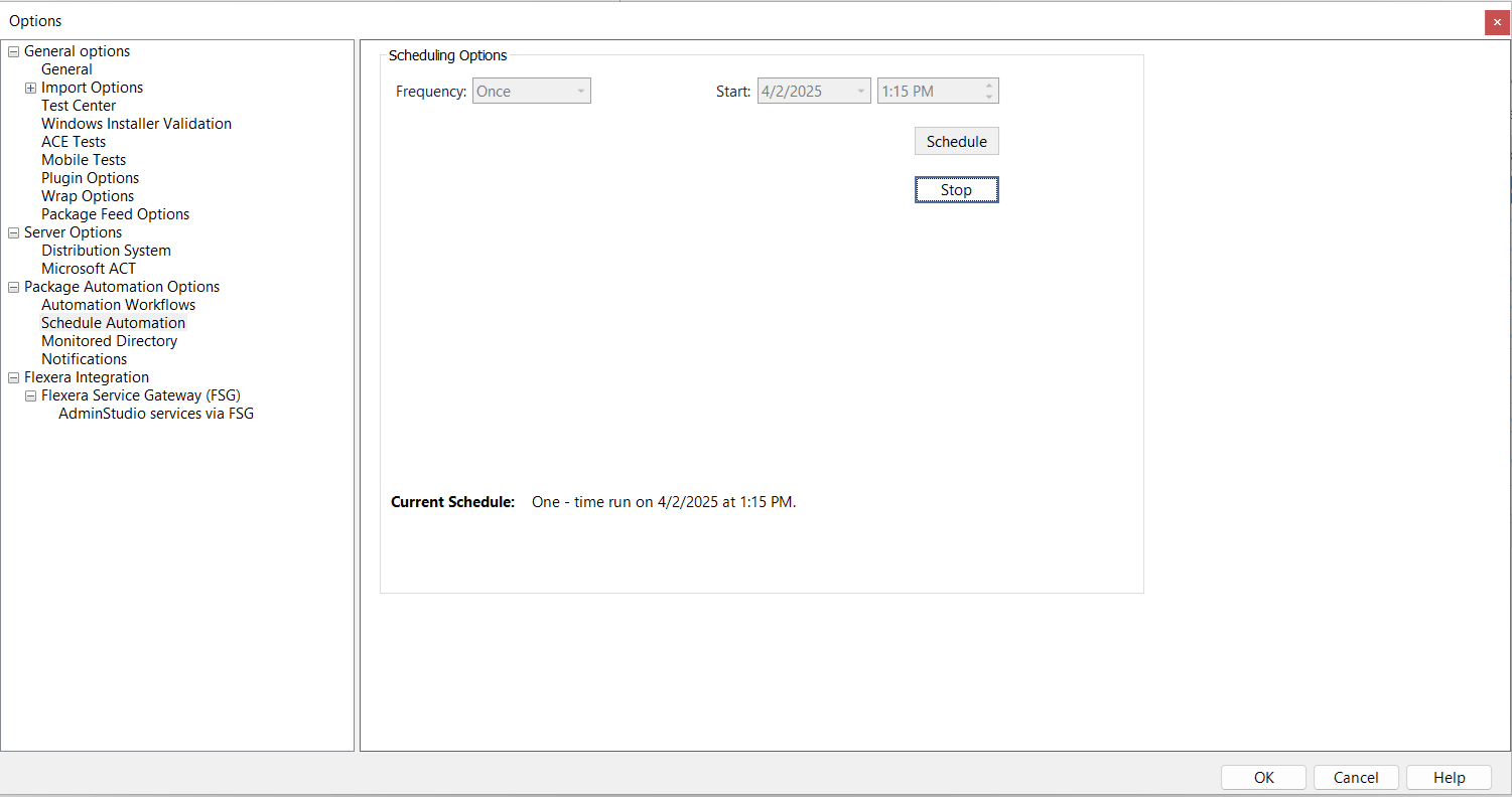 Under Package Automation Options, select Schedule Automation. The Scheduling Options tab opens.