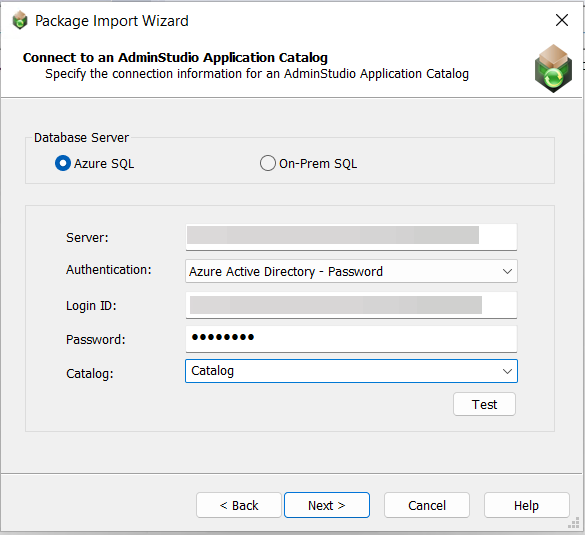 If you selected Server Authentication, enter the appropriate Login ID and Password. If you selected Azure Active Directory - Password, enter the appropriate Azure Login ID and Password.