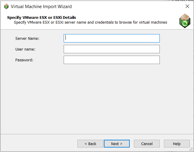 | Server Name | Enter the name of the VMware ESX or ESXi server you want to connect to. |
