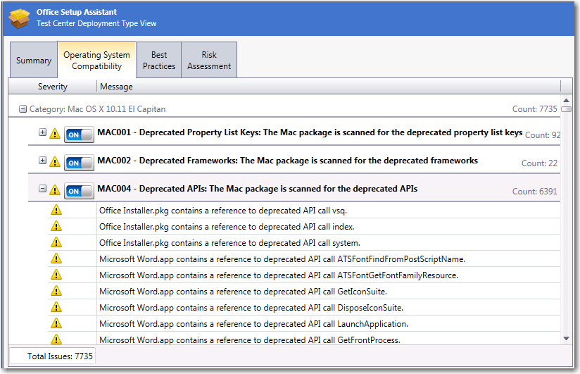 Viewing Combined Test Results of Child Applications of PKG and DMG Installers