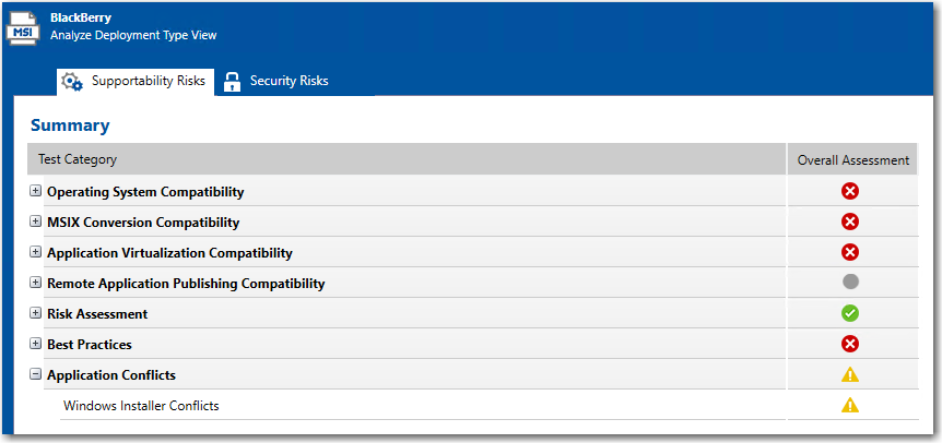For more detailed information on the issues generated in by Application Conflicts tests, including information on how to resolve these issues, see Application Conflicts Tests.