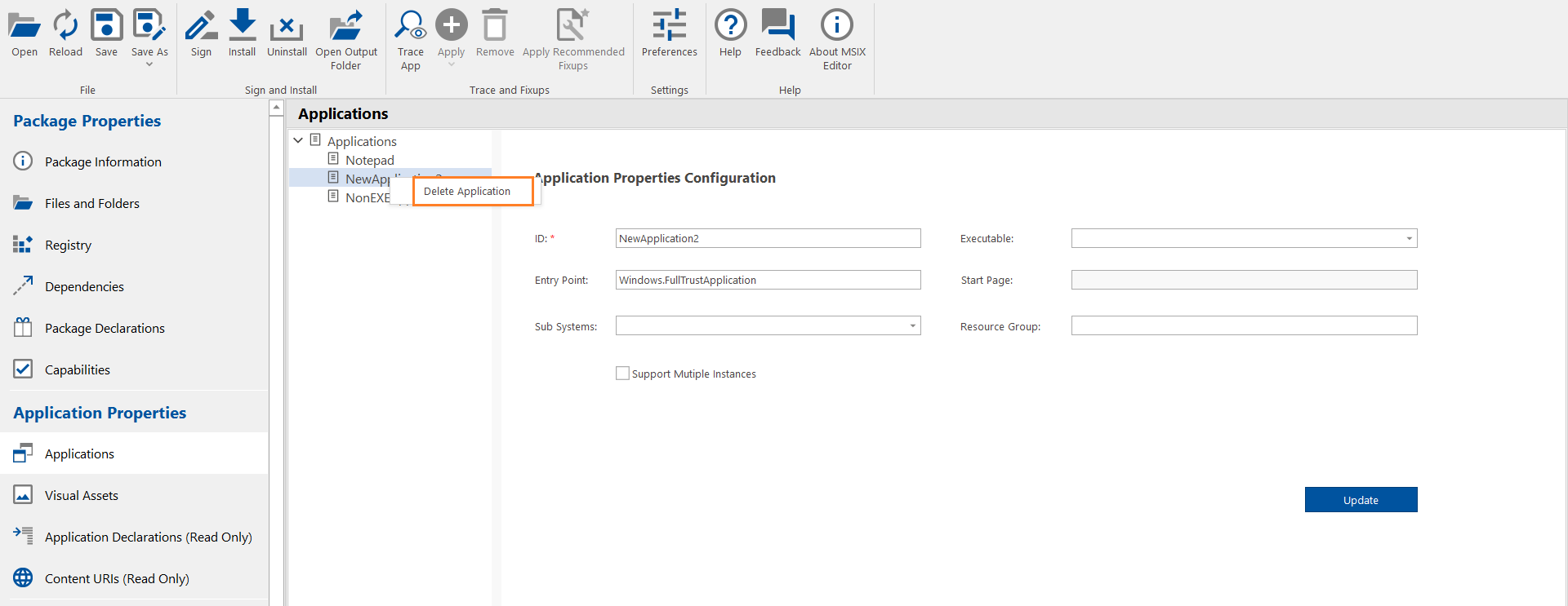 In the left pane, click on Applications under Application Properties. The Applications page opens.