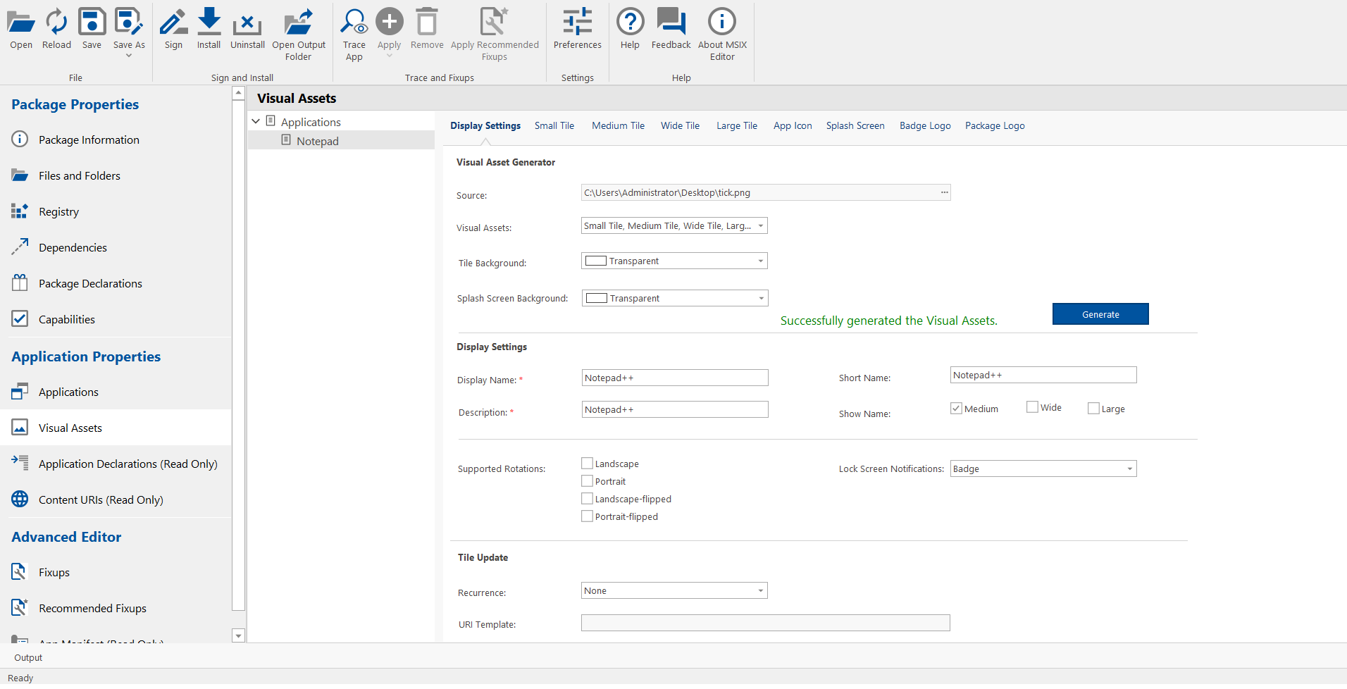 - Click on Visual Assets view in the left pane under Application Properties. The Visual Assets page appears.