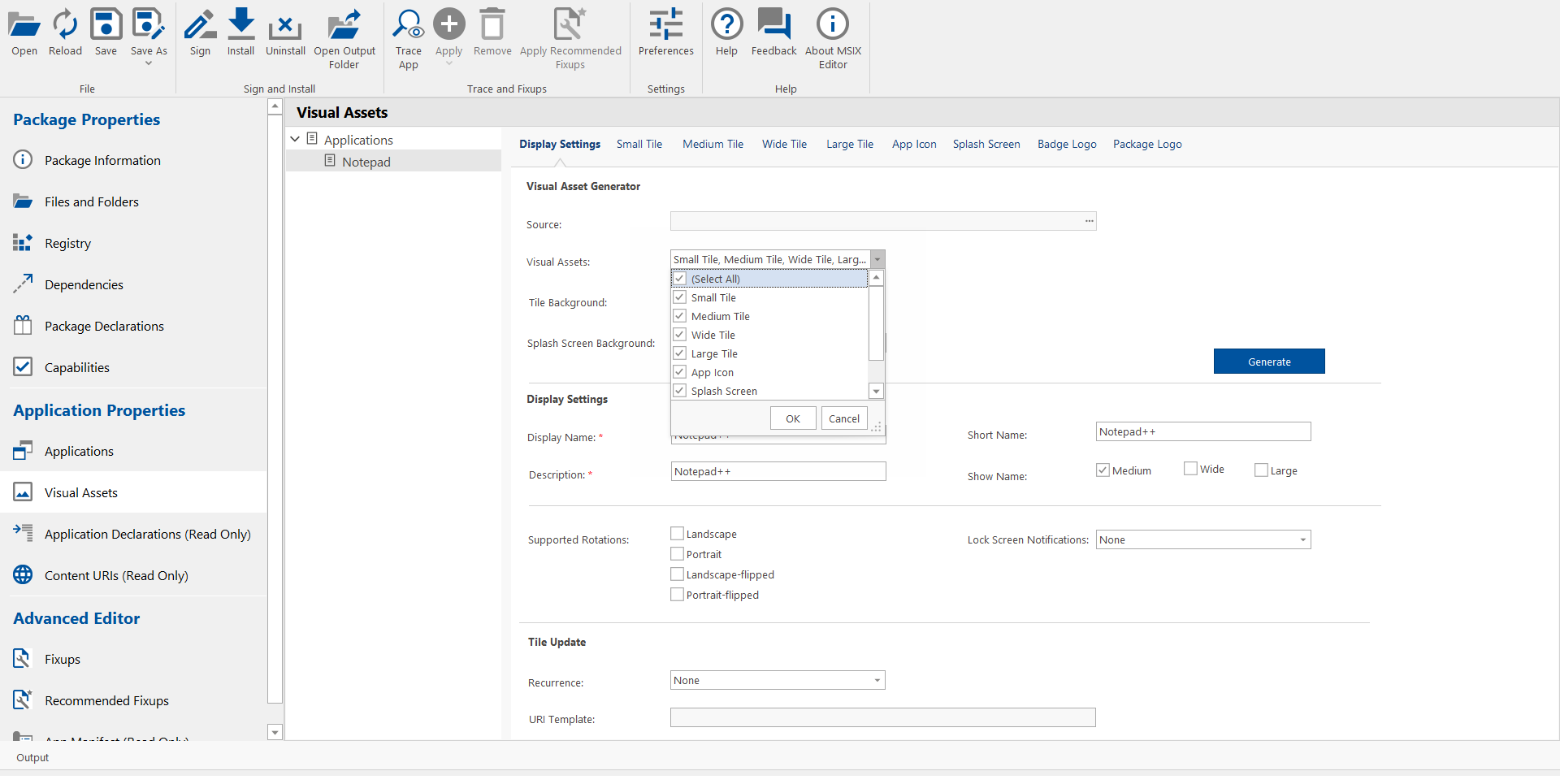 To generate visual Assets, perform the following steps.